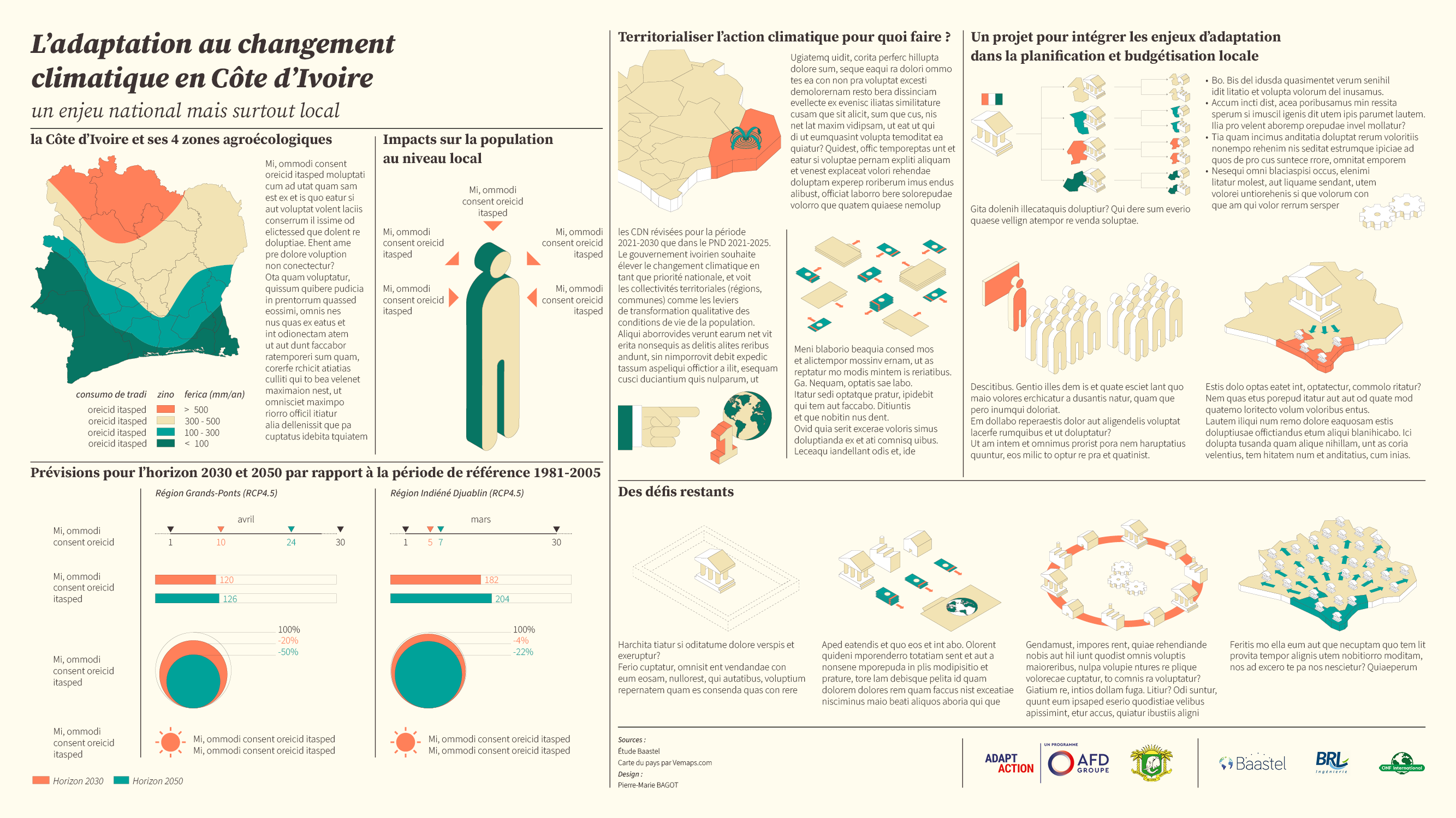 Mise en page, infographie et dataviz du rapport de BAASTEL sur l'adaptation au changement climatique en Côte d'Ivoire commandité par l'AFD