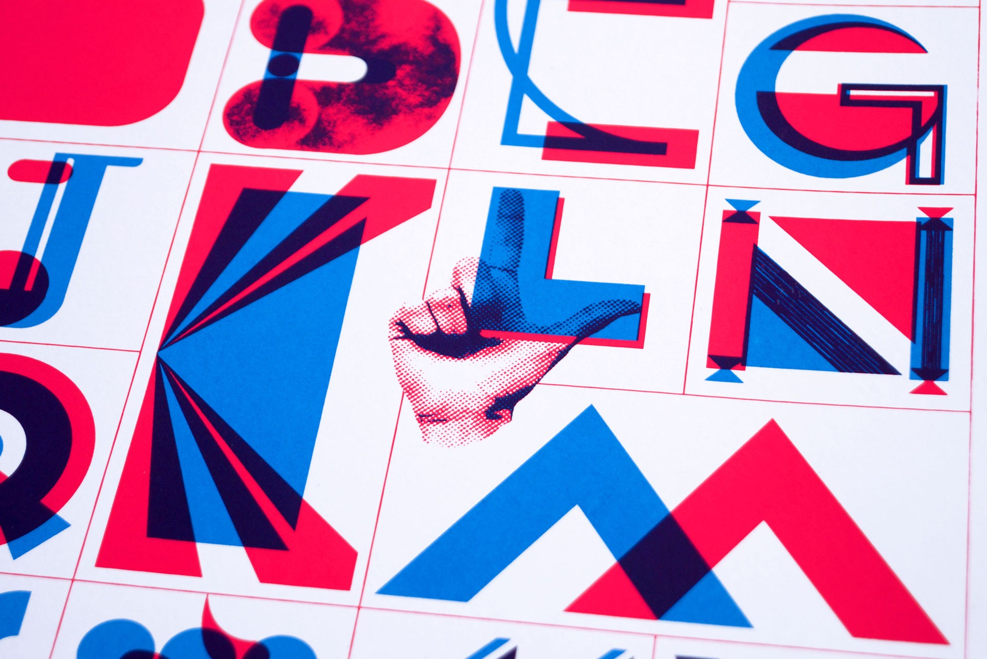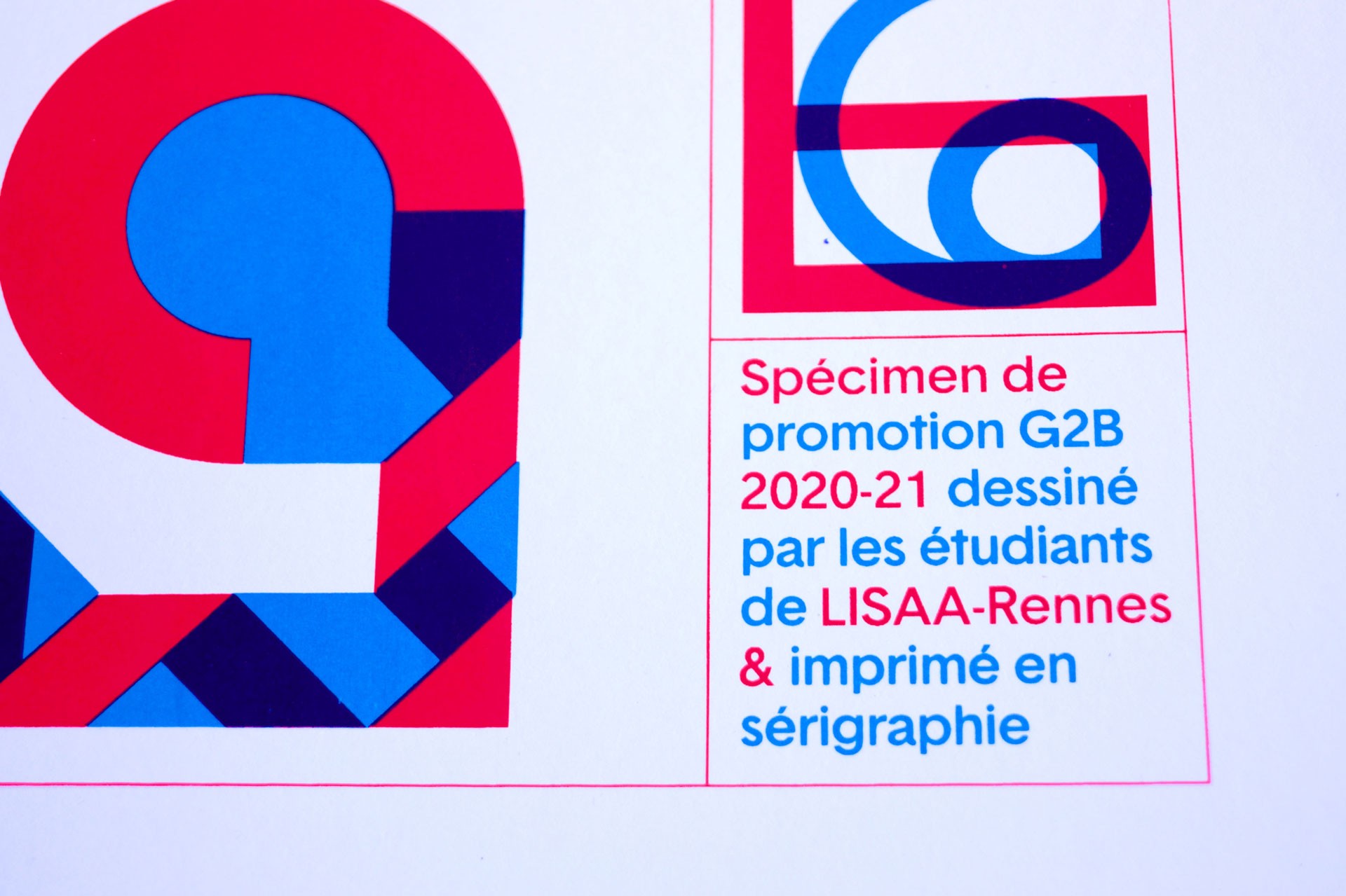 Impression en sérigraphie de 2 spécimens typographiques créés par les étudiants de la promotion G2 de LISAA-Rennes Mise en place des spécimens et de l'atelier de sérigraphie par MACULA NIGRA