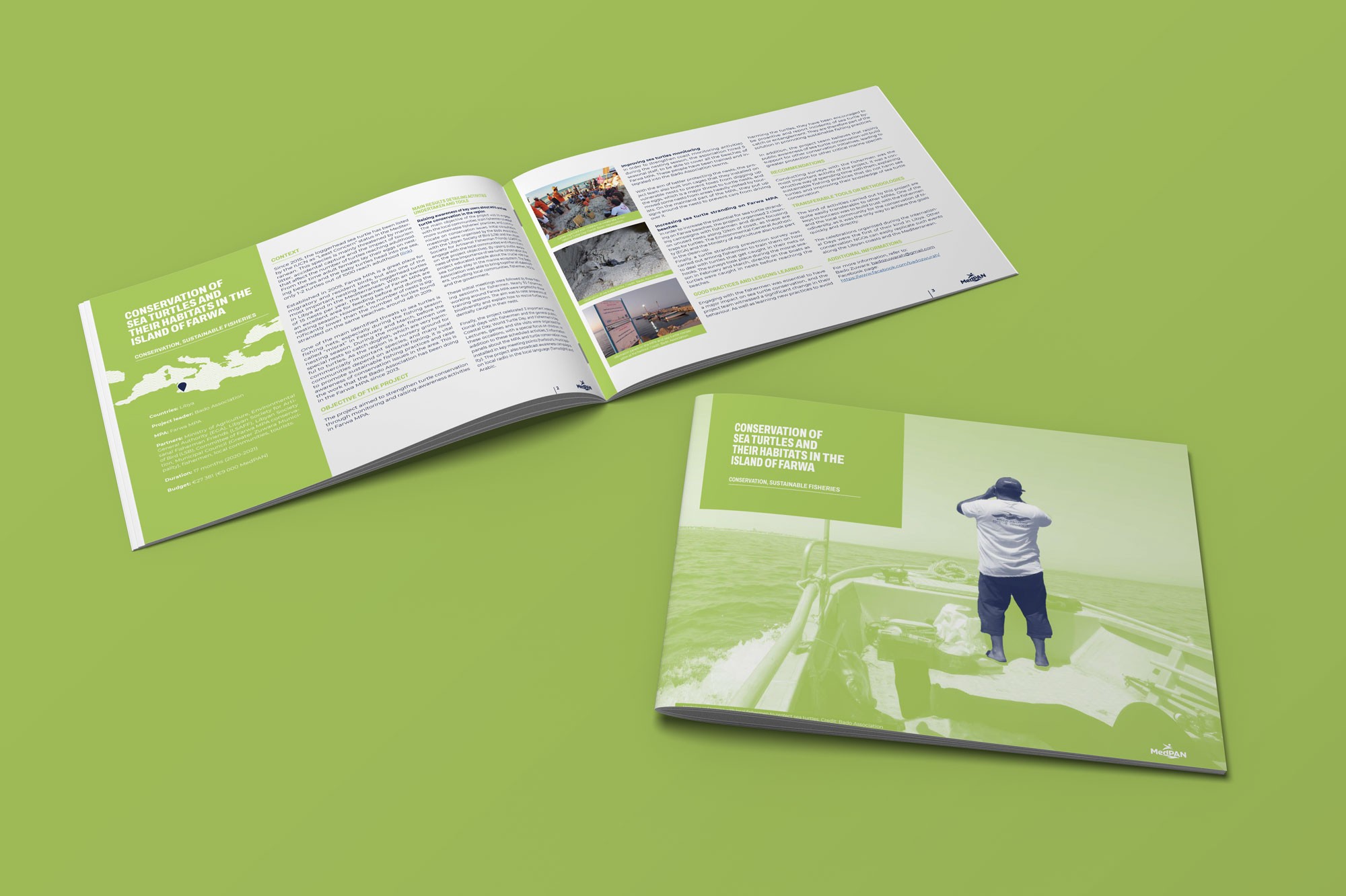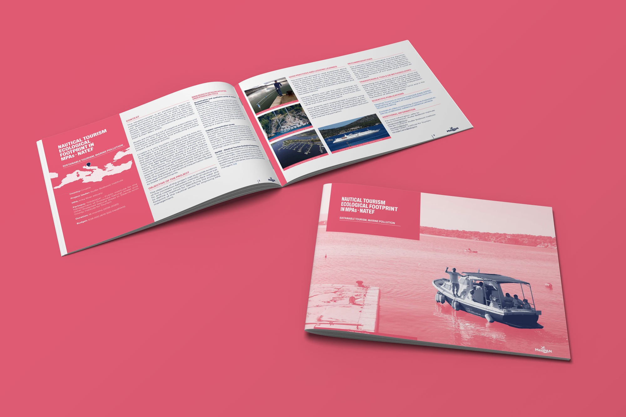 Mise en page et graphisme de 21 fiches (en anglais traduites ensuite en français) de différentes études scientifiques d'AMPs (Aires Marines Protégées) autour du bassin méditerranéen