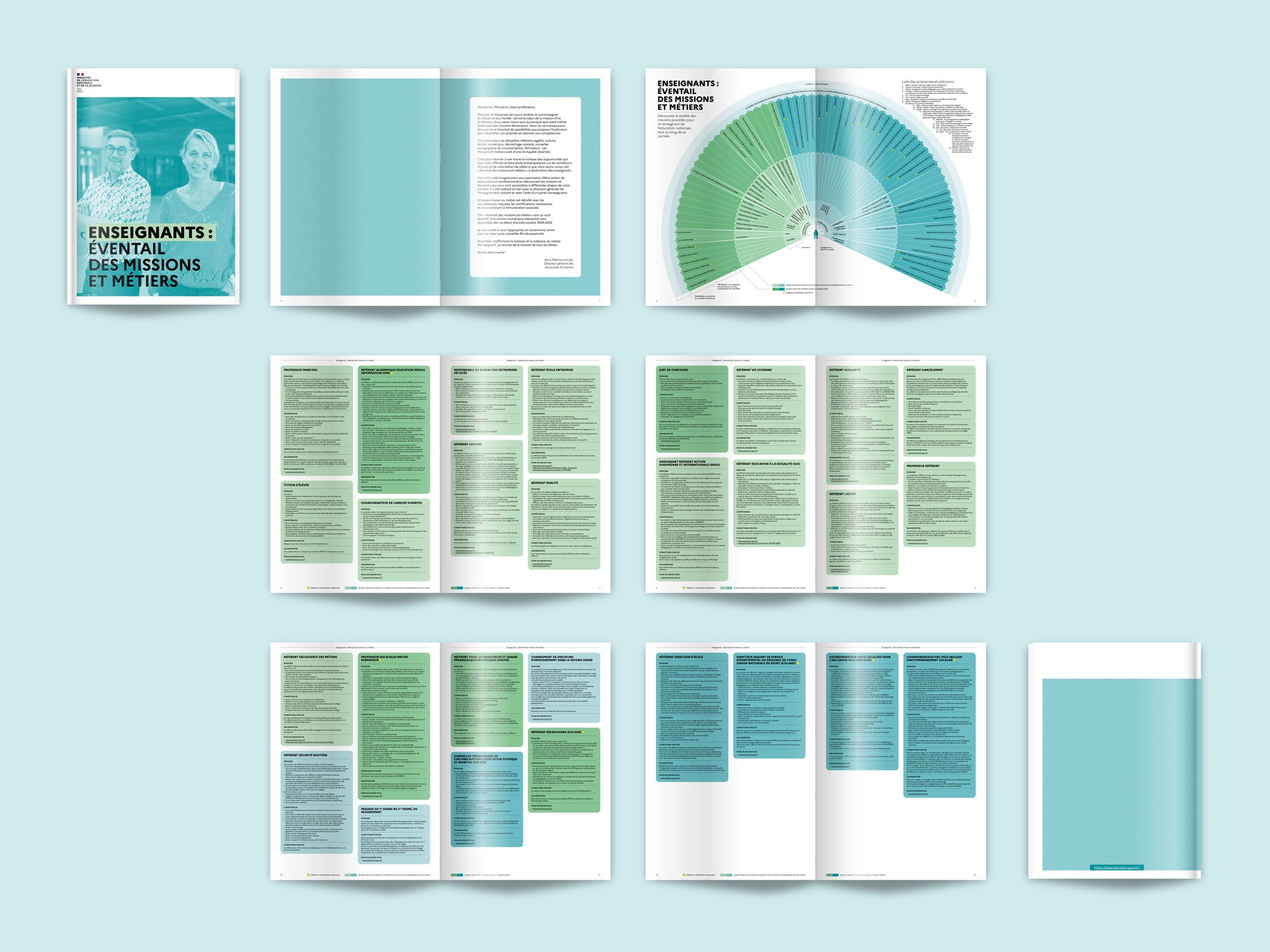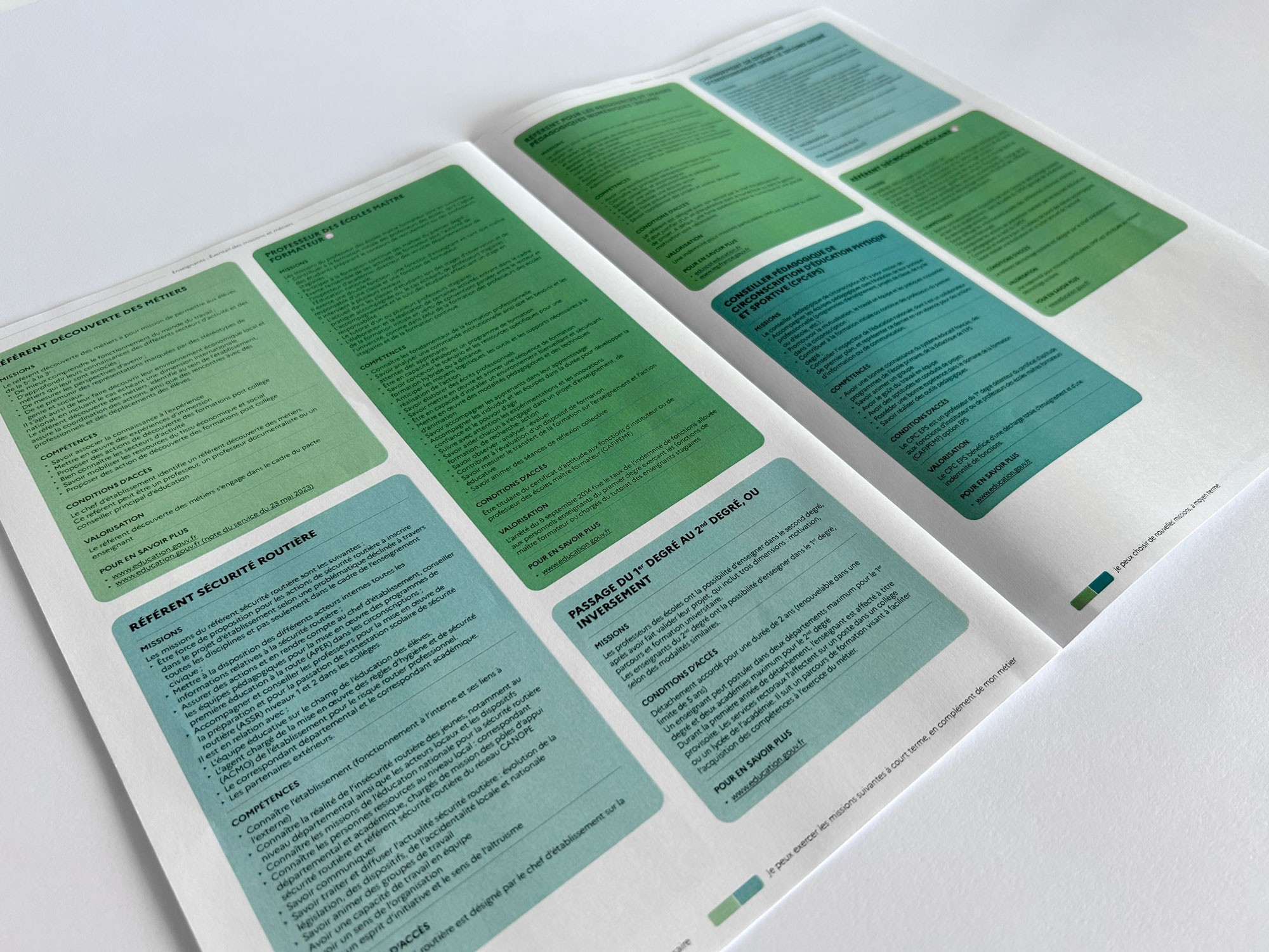 Travail en collaboration avec La Netscouade pour le Ministère de l'Éducation nationale et de la Jeunesse sur un tableau des différents métiers possibles lorsqu'on débute en tant qu'enseignant.