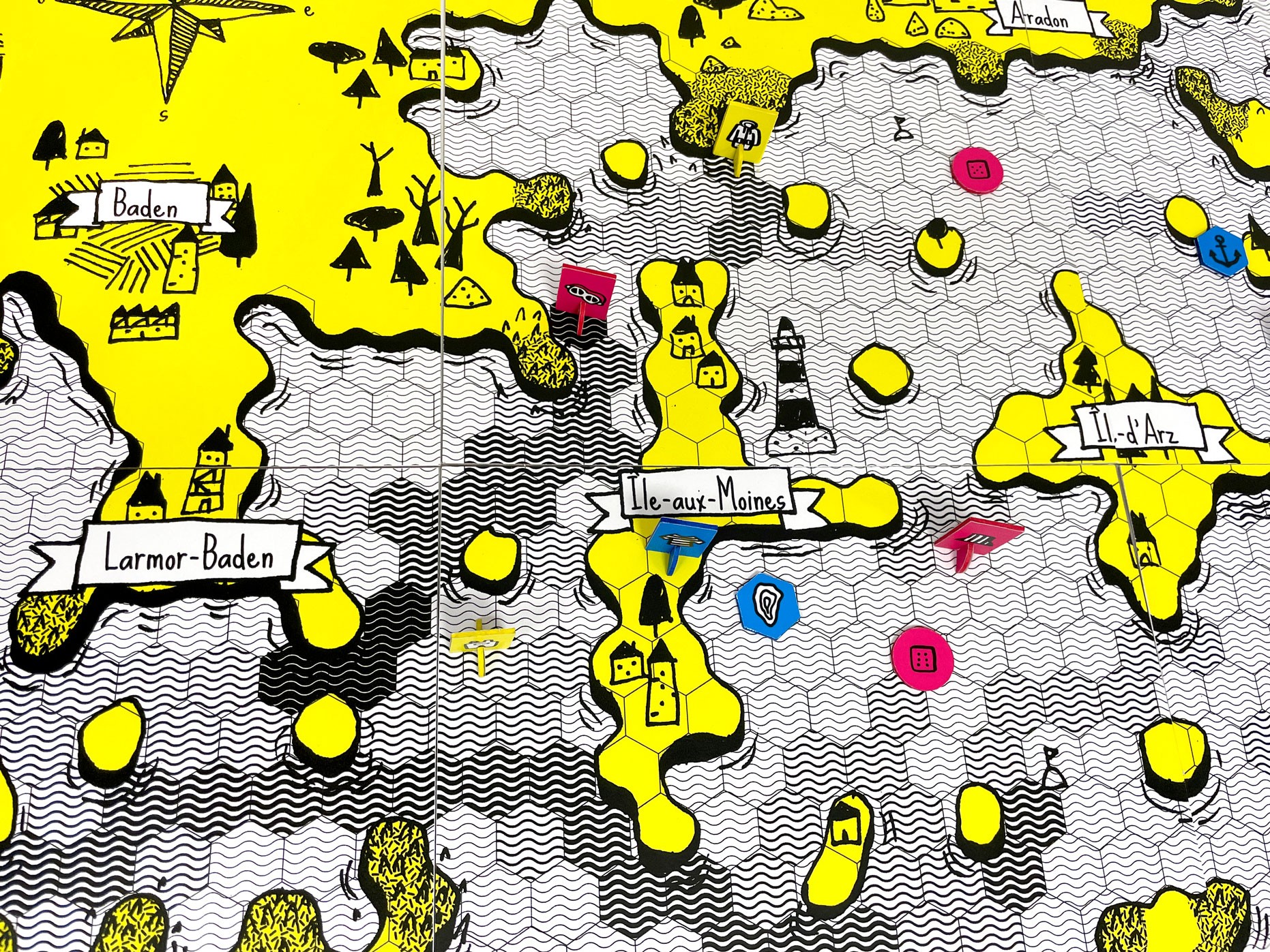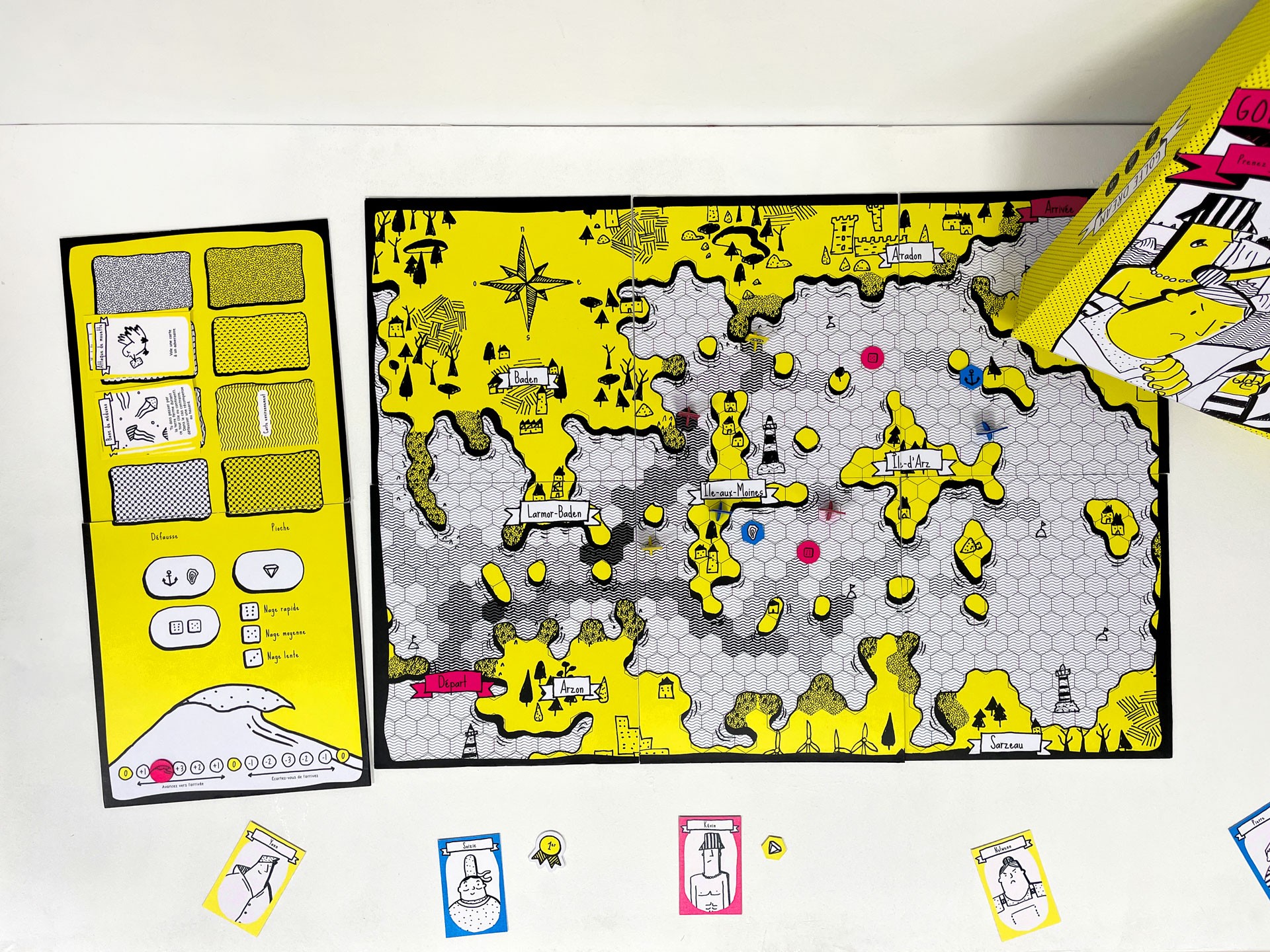 Design graphique du jeu de société GOLF DREAM Ce jeu est une course ou le but est de remonter les eaux du golfe du Morbihan tout en piégeant ses adversaires afin d'être le premier à l'arrivée.