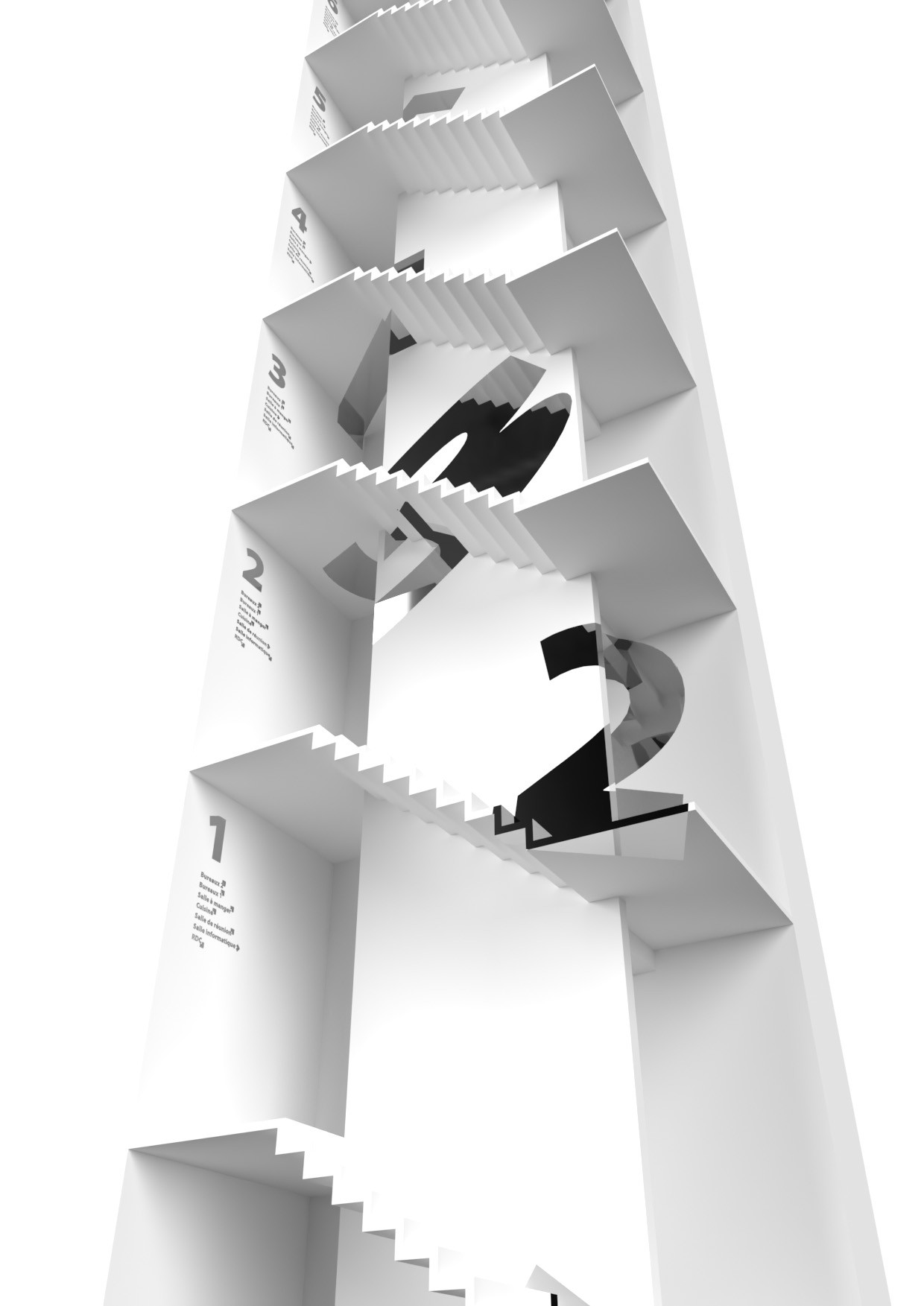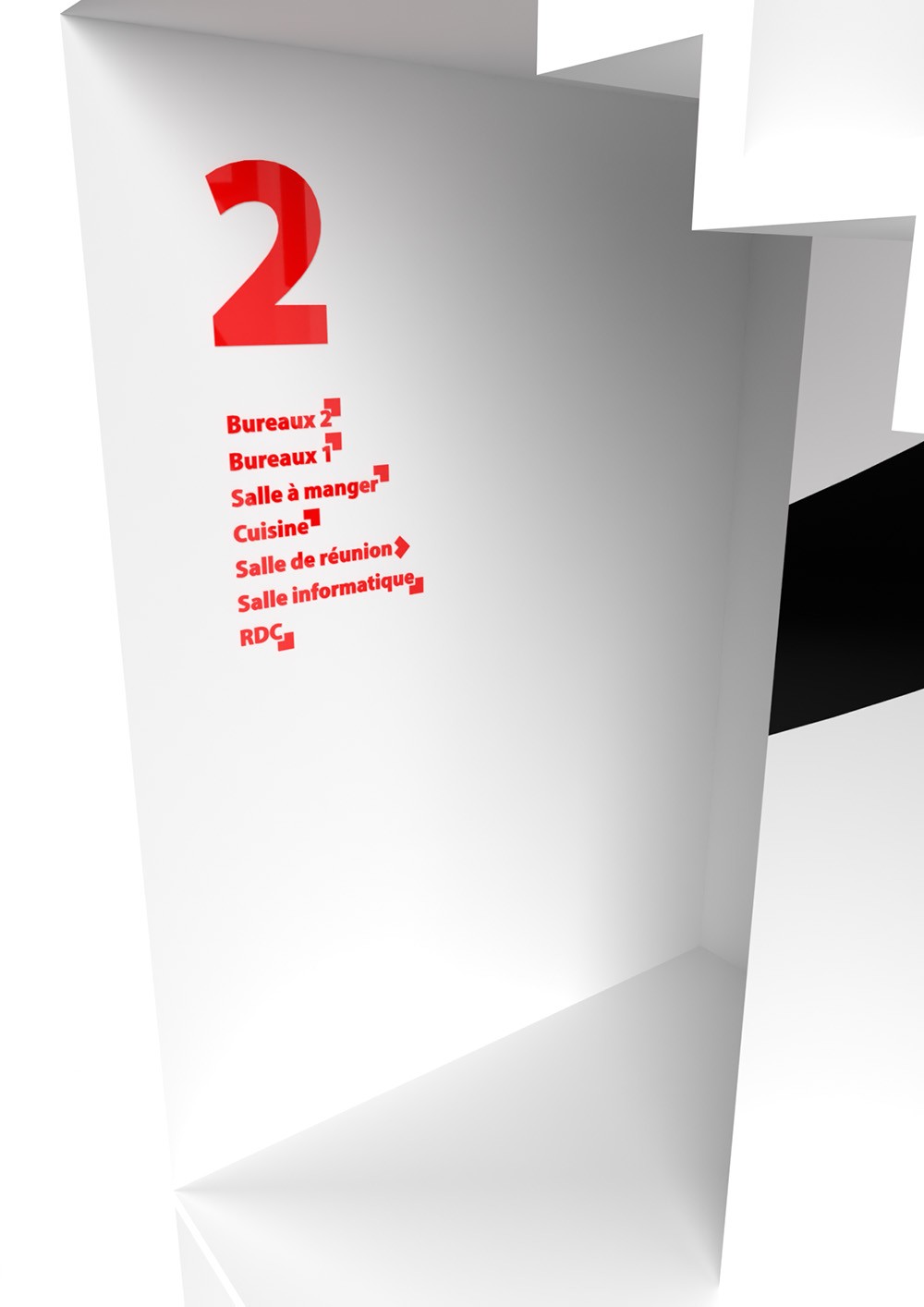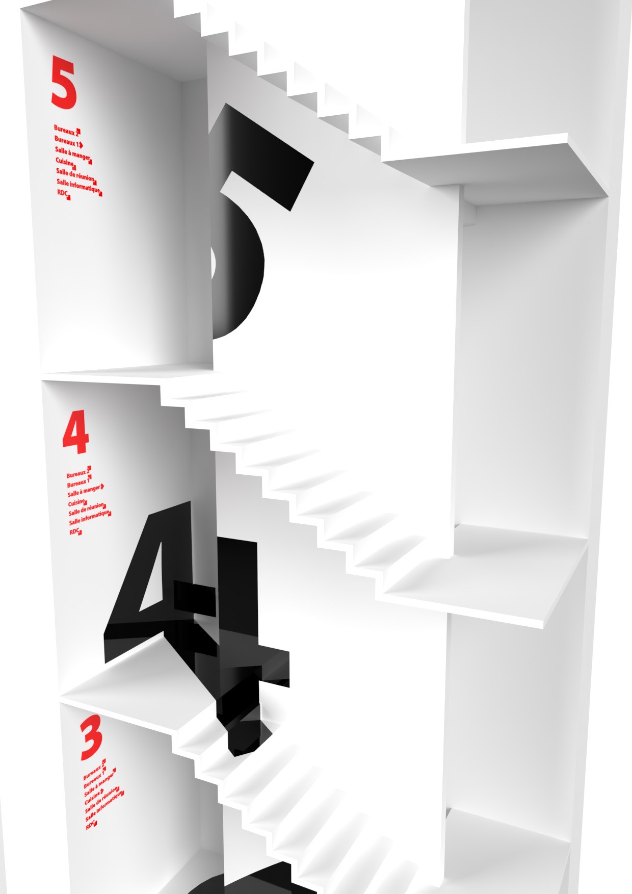 Signalétique pour une cage d'escalier de bureaux Par Pierre-Marie BAGOT