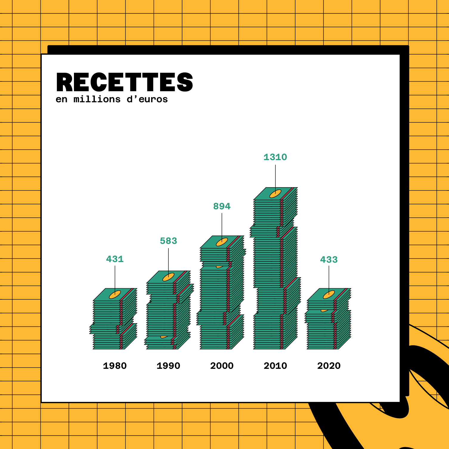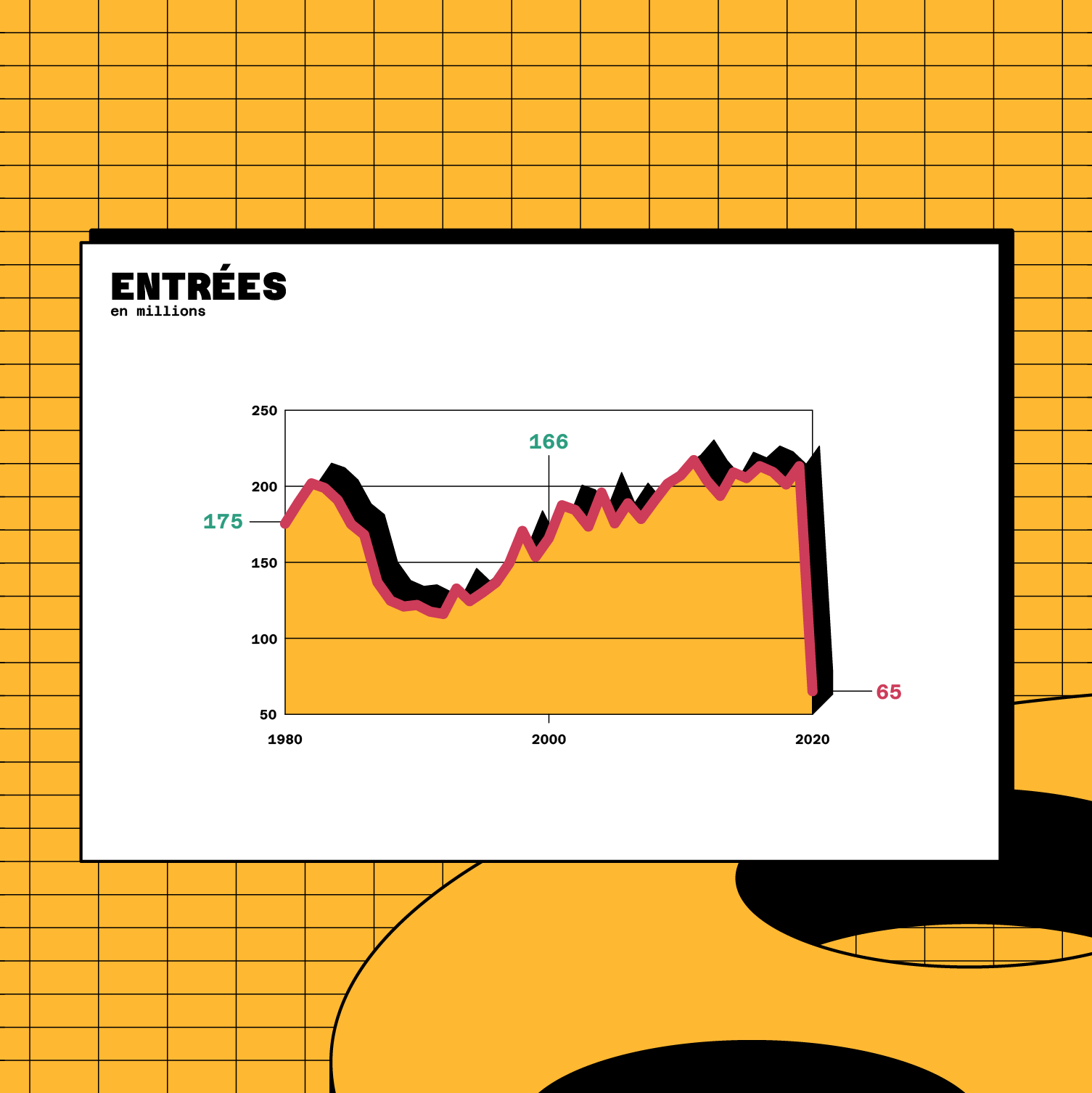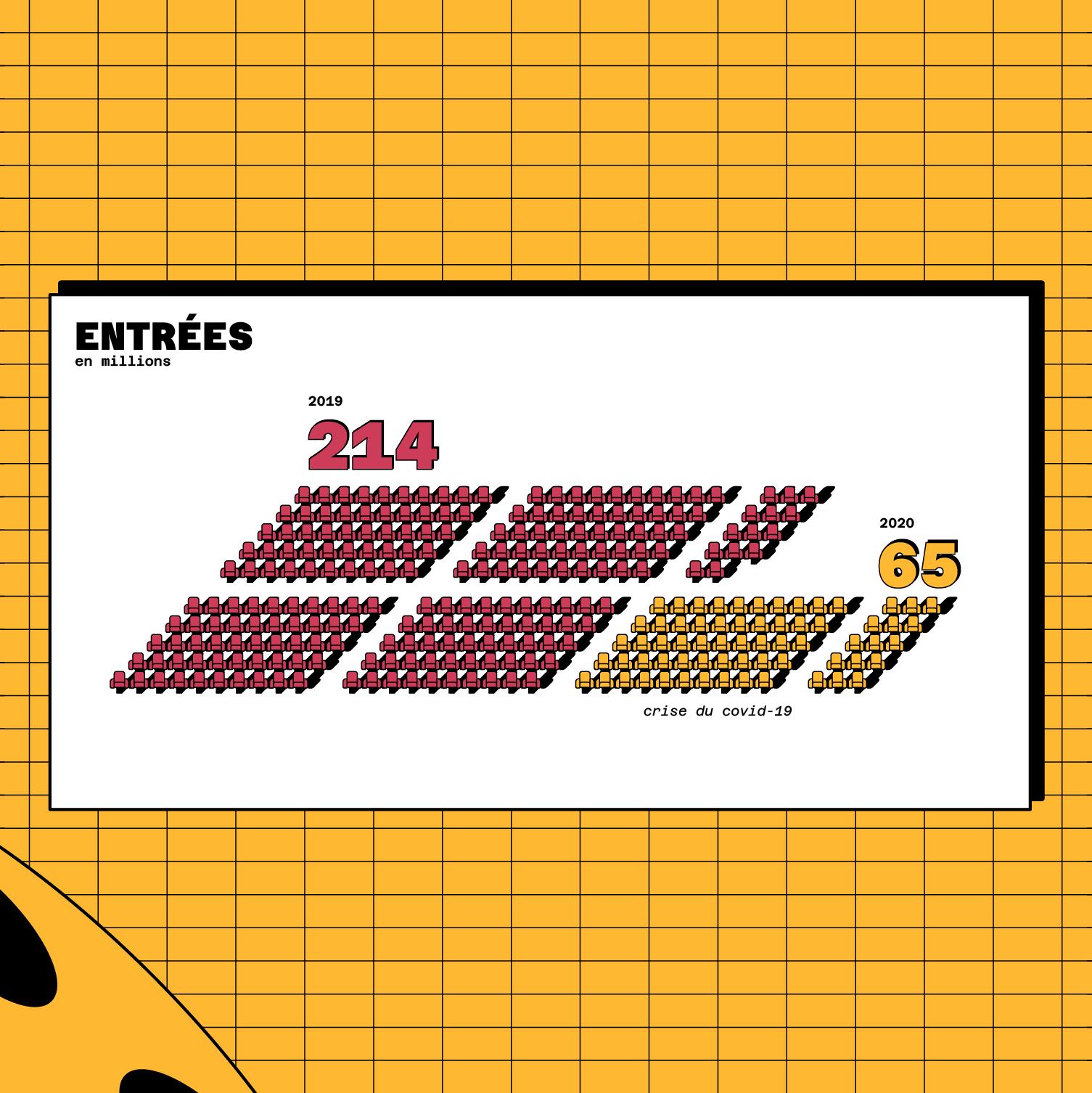 Dataviz sur l'évolution des salles de cinéma en France métropolitaine. Design par Pierre-Marie BAGOT