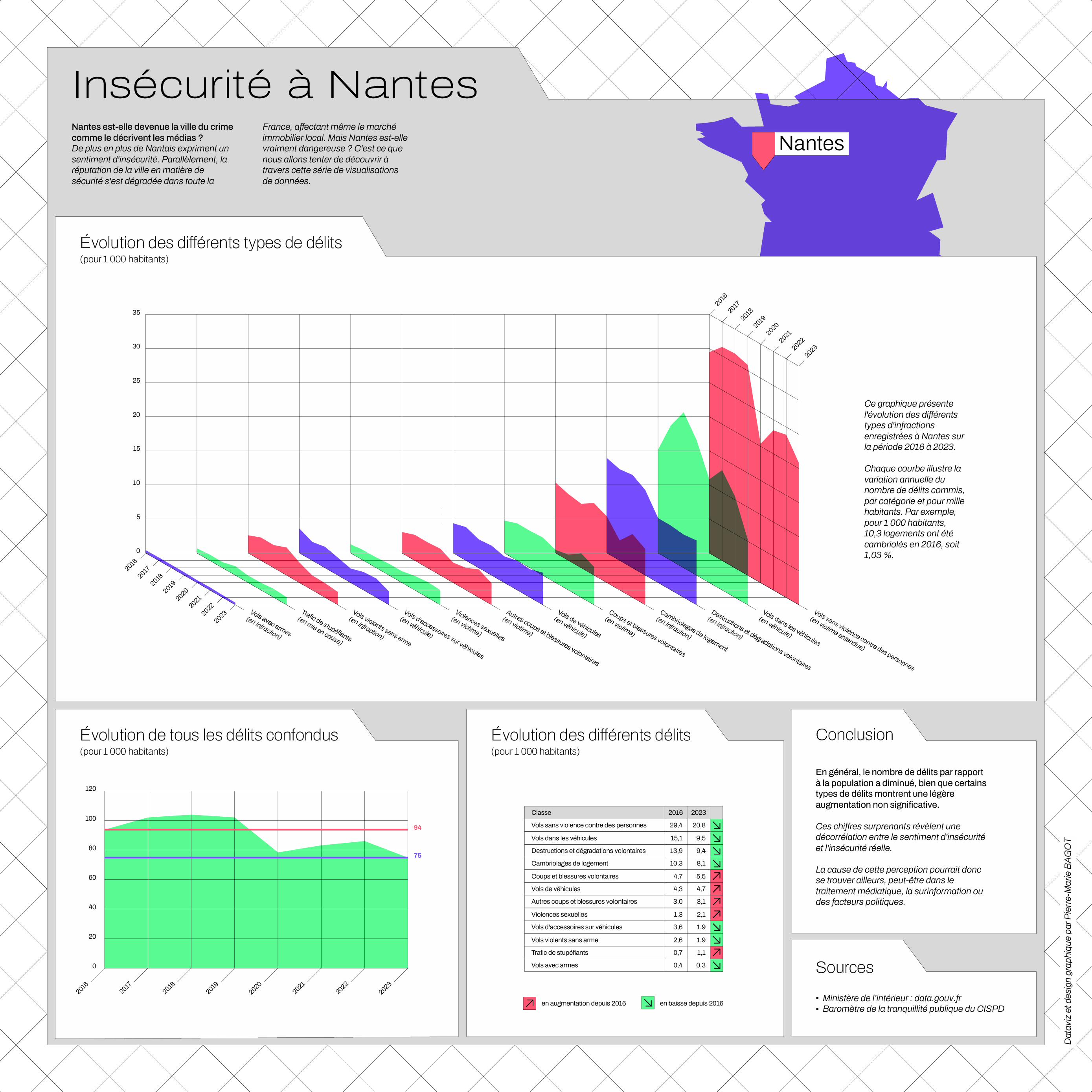 Dataviz sur l'insécurité à Nantes sur la base des chiffres du ministère de l'Intérieur