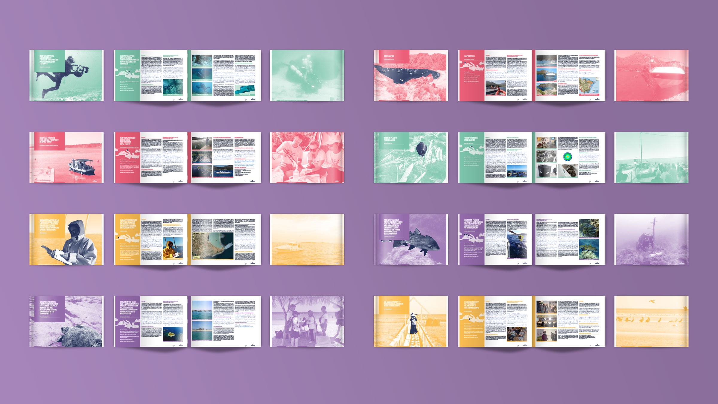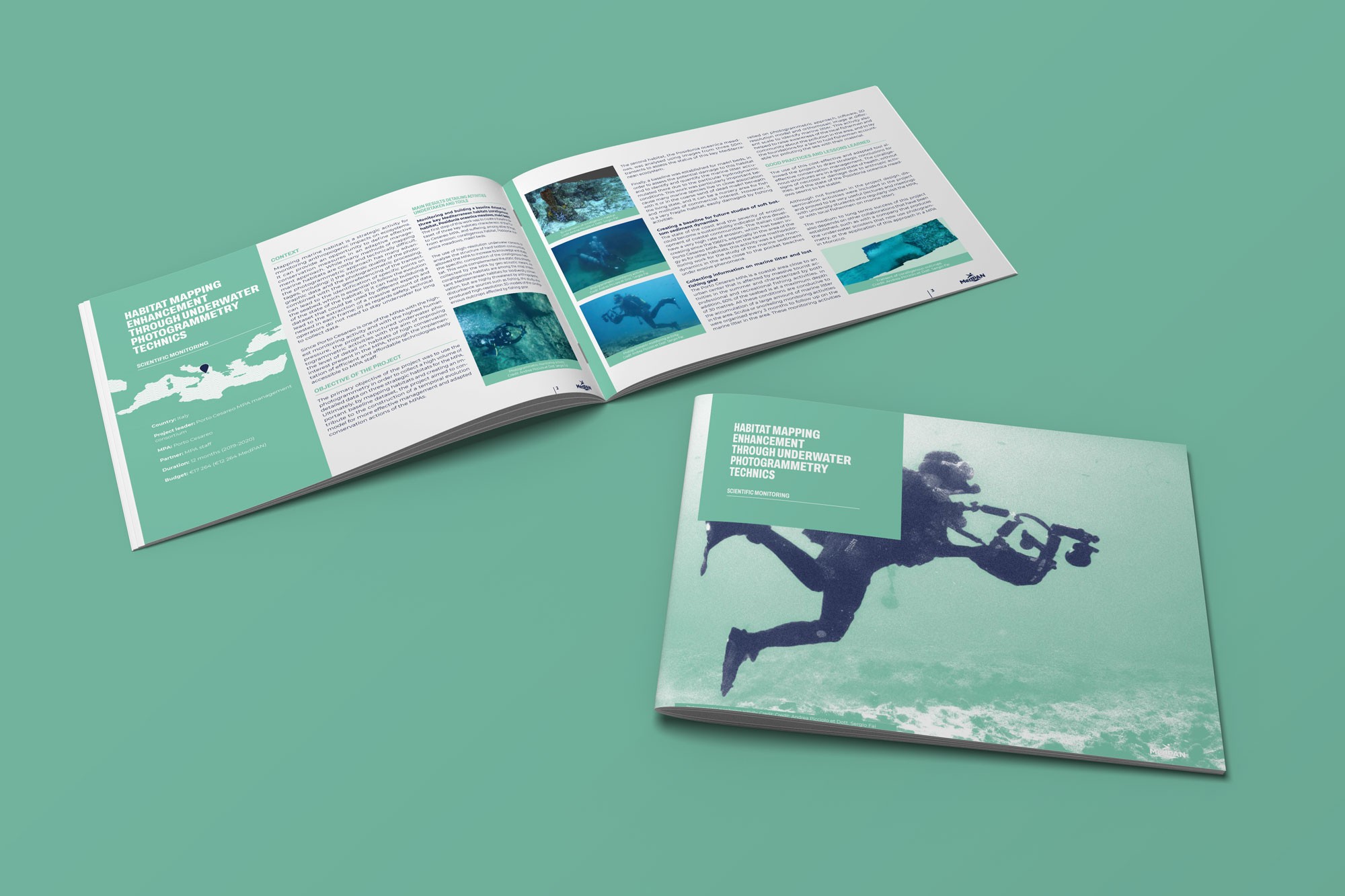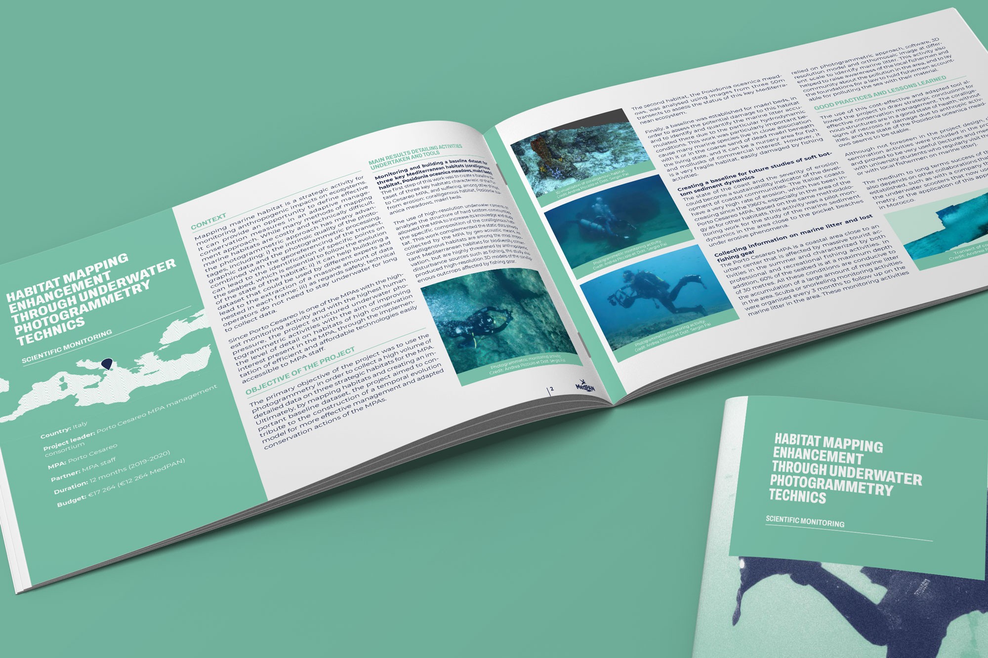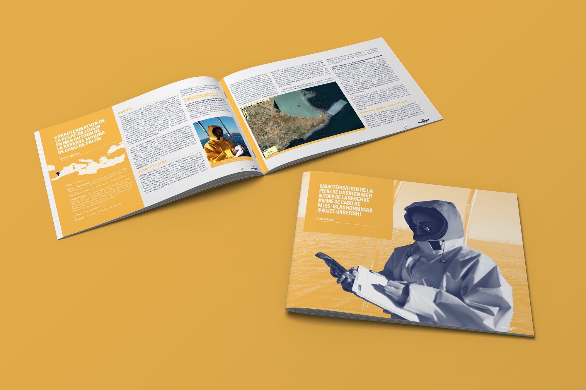 Mise en page et graphisme de 21 fiches (en anglais traduites ensuite en français) de différentes études scientifiques d'AMPs (Aires Marines Protégées) autour du bassin méditerranéen