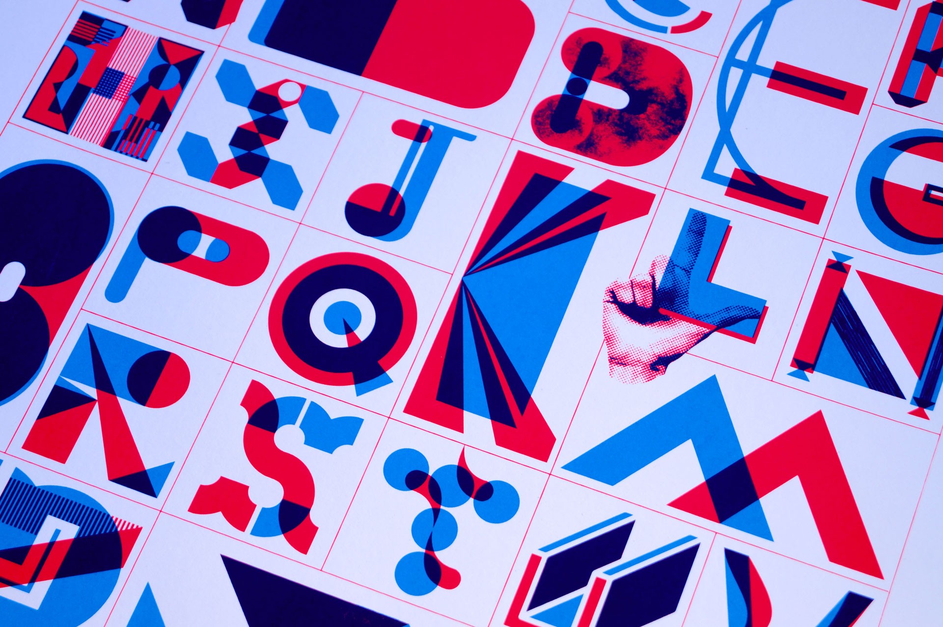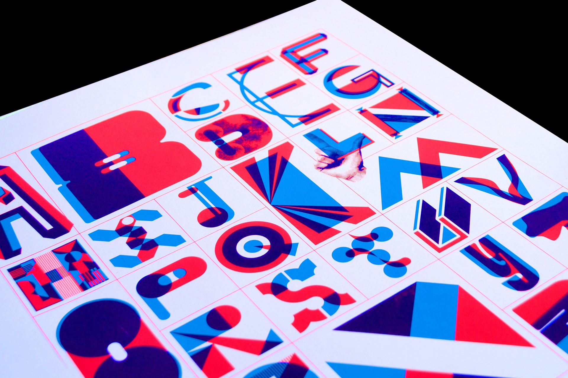 Impression en sérigraphie de 2 spécimens typographiques créés par les étudiants de la promotion G2 de LISAA-Rennes Mise en place des spécimens et de l'atelier de sérigraphie par MACULA NIGRA